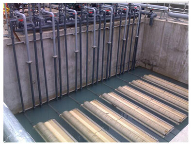 (3)調(diào)節(jié)池出水用提升泵提升到缺氧池,同時經(jīng)過曝氣硝化過的污水回流進(jìn)行反硝化脫氮。出水進(jìn)入接觸氧化池,通過曝氣進(jìn)行好氧生化處理同時進(jìn)行硝化反應(yīng)。